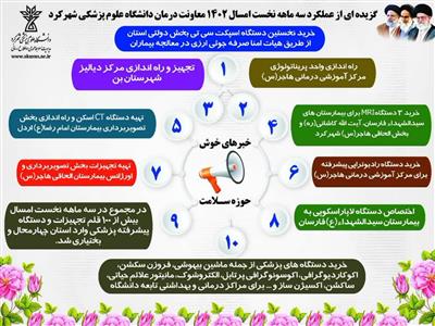 خبرهاي خوش حوزه سلامت استان در قاب اينفوگرافي کد خبر: 191938 تاریخ انتشار: 1402/05/09 20:27:02نمایش: 29712 اخبار حوزه سلامت استان در سالجاري با تحولات خوبي روبرو بوده است و تجهيزات و امکانات قابل توجهي به مجموعه درمان استان اضافه شده است.